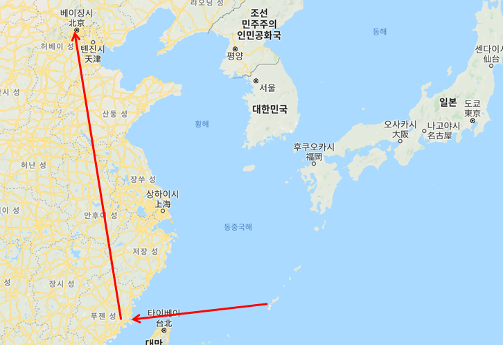 류큐국은 당시 청나라와 일본에 조공을 바치고, 조선과도 교류하고 있었습니다. 그렇기 때문에 다행히도 류큐인들은 문순득 일행을 호의적으로 대해주었습니다. 그리고, 류큐국에서 9개월을 체류하다가 1802년 10월 류큐국에서 청나라로 가는 조공선에 몸을 싣게 됩니다. 당시 류큐국에서는 조선을 오가는 정기 배편이 없어 조선인들이 표류해서 오면 청나라를 통해서 조선으로 돌려보냈기 때문인데, 이때 조공 사절이 탄 두 척의 배와 문순득 일행 및 청나라에서 표류해온 사람들 및 류큐인들이 탄 한 척의 배까지 총 세 척이 청나라를 향해 떠났습니다. 이때의 계획은 조공선을 타고 청나라 푸저우에 도착한 후 육로로 북경까지 가는 것이었습니다. 북경에 정기적으로 오는 조선 사신단에 합류하여 조선으로 돌아가기 위해서였죠.