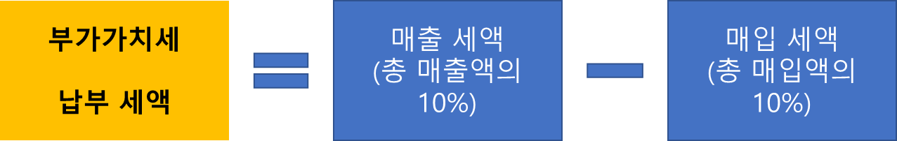 - 일반과세자 : 1년간 매출액이 8천만원 이상일 경우 (매출세액 - 매입세액)이 납부 금액이 되며, 6개월 단위로 1년에 2번 신고합니다.